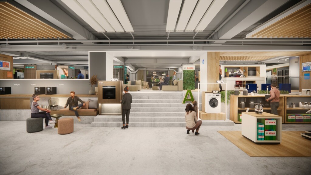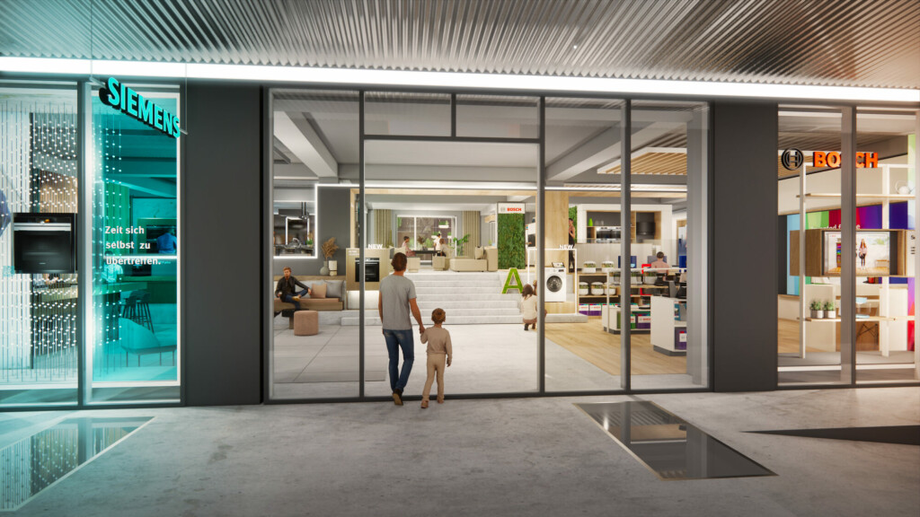 Bei Siemens steht Modernität, Effizienz und Ästhetik im Vordergrund. Die Räumlichkeiten werden sich dementsprechend in hochwertigem Design und ebensolchen Materialien präsentieren. Der Fokus liegt dabei auf der Exklusiv-Reihe studioLine. Ferner werden zukunftsorientierte Technologien in Form von Home Connect erlebbar und greifbar gemacht.